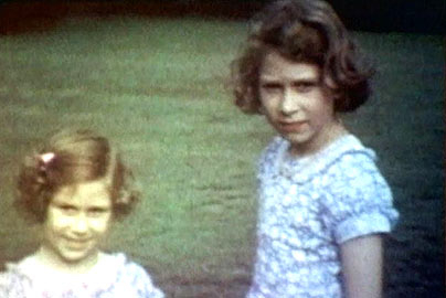 ▲1943年17岁的伊莉莎白公主(右)和13岁的玛格丽特公主(左)出演《阿拉丁》的剧照。
