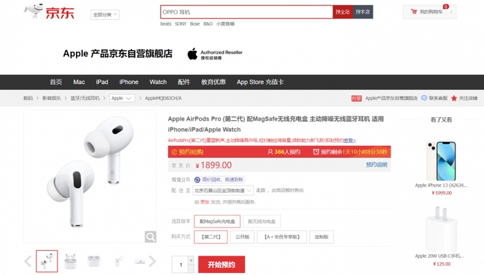 新款AirPods Pro由全新H2芯片驱动,对主动降噪和通透模式进行了重大升级,通过独特方式为用户带来更加身临其境的空间音频体验。此外,新一代 AirPods Pro还带来更持久的电池续航、全新的充电盒,并新增一种耳塞尺寸,以更好地贴合用户耳形,售价1899元起,京东9月9日开启预购,9月23日首销。