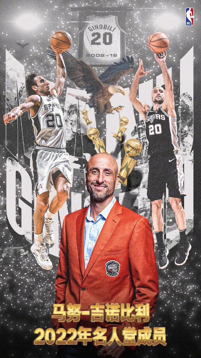 2018年夏天,吉诺比利正式退役,不到一年后的2019年3月,马刺正式退役其20号球衣,随着今天入选奈史密斯篮球名人堂,退役4年的“妖刀”已然没有遗憾。