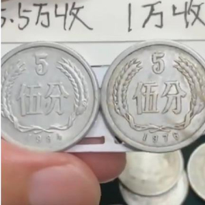 某主播展示两枚不同五分硬币,一枚回收价5.5万元,另一枚1万元