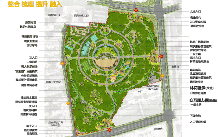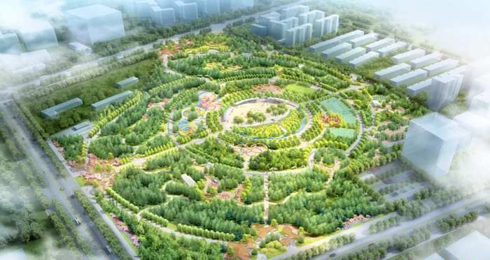 据了解,项目总用地面积14.3万平方米,计划在原有公园架构基础上形成“一心、两圈、两区、多点”的景观及功能布局,结合周边环境,考虑动静分区,合理场地功能布置,新建童趣乐园、飞跃球场、林幽小憩、林栈探知、林坞起舞、林花漫步、乡愁记忆、趣学园地等活动场地。
