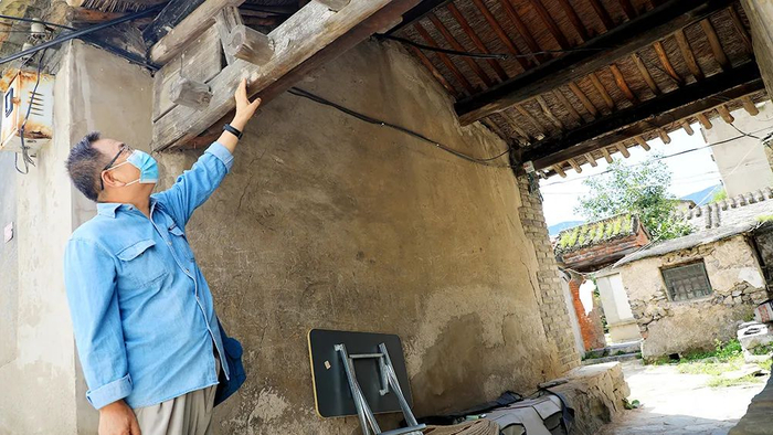 张廷秀走进村中一处古宅,坐在原本是宅门的廊道里介绍,“这过道儿顶上的房梁,一般人家都是三道梁,我们这是五道梁,还有这个方形的木框,一般人家是没有的,古时候,只有家境比较优渥的富户才会做这个。”