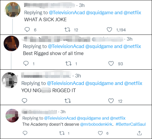 部分网民破口大骂,指责主办方“操纵”奖项,甚至质疑主办方被“贿赂”。这些网民认为,虽然《鱿鱼游戏》不错,但鲍勃·奥登科克更应该拿奖。