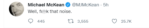 在《风骚律师》中饰演男主哥哥“查克”的迈克尔·麦基恩在李政宰获奖后立刻发推:“好吧,别特么吵(鼓掌尖叫)了。”