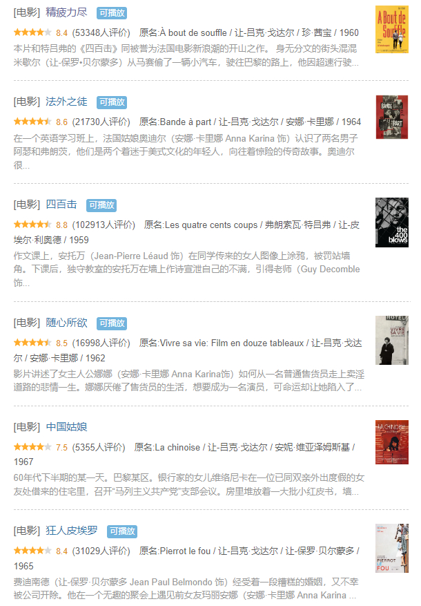 以戈达尔为代表的法国新浪潮电影运动在法国乃至全球留下了宝贵的电影文化遗产,影响了众多国家的创作者和影人