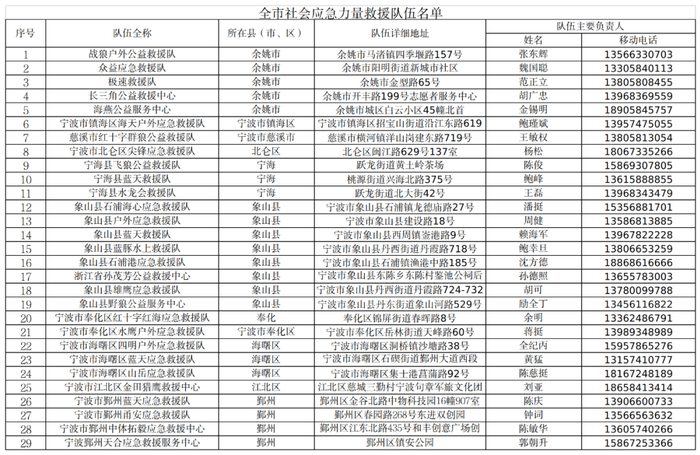 市防指办(市应急管理局)对外公布29支社会应急力量救援队伍电话,若你身边有人需要紧急救援,可拨打以下电话↓