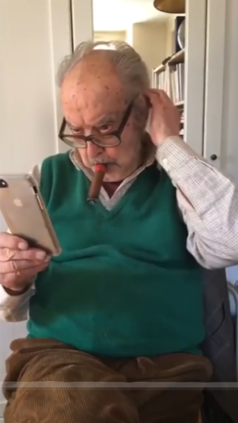 戈达尔最近一次出现在公众视野,是2020年新冠疫情暴发初期,他与全球网友在线上进行了一场直播。89岁的老爷子在长达一个半小时的直播里,穿着一件绿色毛织坎肩,里面穿一件细纹格子衬衣,下身穿驼色灯芯绒长裤,戴着黑框眼镜,手里夹一根大雪茄,依旧十足文艺范儿。