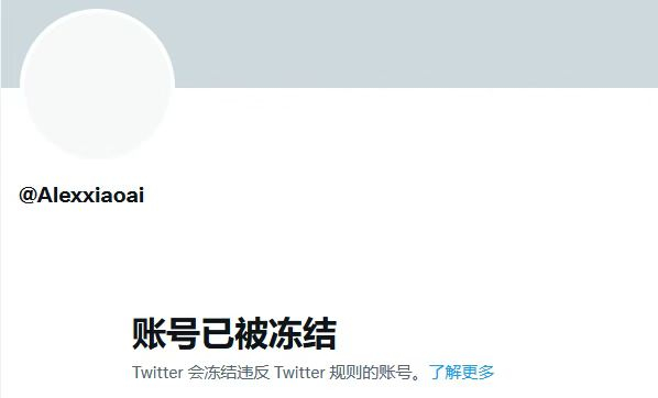 爱丽克斯的推特账号显示“被冻结”