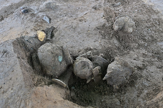 郑州市文物考古研究院研究员黄富成介绍,墓地残存面积约1万平方米,共发现25座墓葬,其中3座墓葬出土青铜器,6座疑似祭祀坑,其余16座推测为陪葬墓。