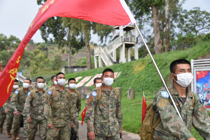 当地时间9月21日下午,伴随着热烈的欢迎声,乘包机抵达刚果(金)戈马国际机场的中国第二十六批赴刚果(金)维和部队第二梯队101名官兵,转乘专车进入中国工兵分队营区。中国新一批赴刚果(金)维和部队由此全部部署到位。