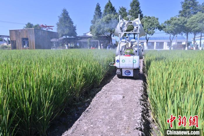 中新网上海9月22日电 (记者 郑莹莹)金秋九月,一台宽约70cm的植保喷洒无人车,正“跑”在沪郊宽约80cm的田埂上,它一边精准地“跑”着,一边往两旁金黄的稻田里喷洒着。