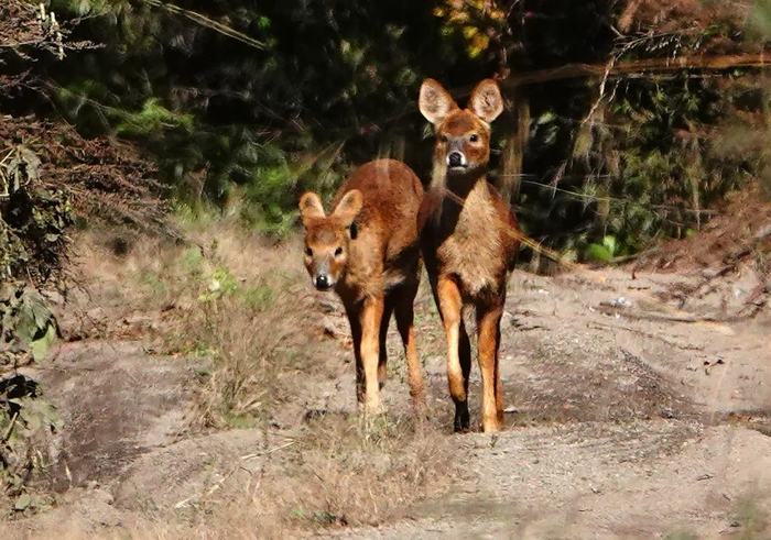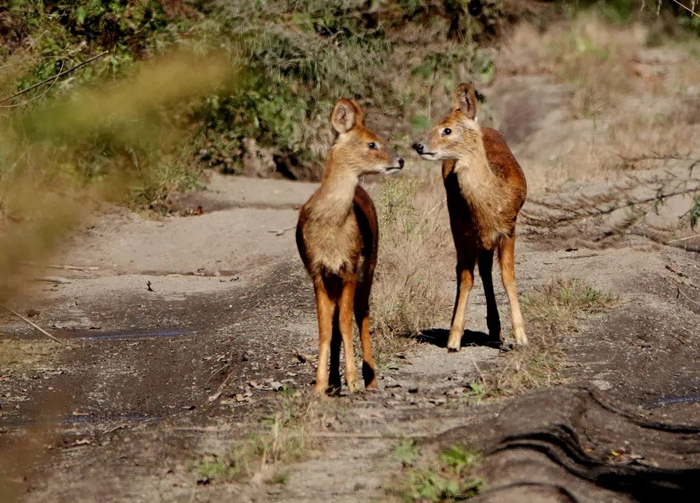 两只獐在长白山漫步,遇到一激动的摄影师,一商量跑了……