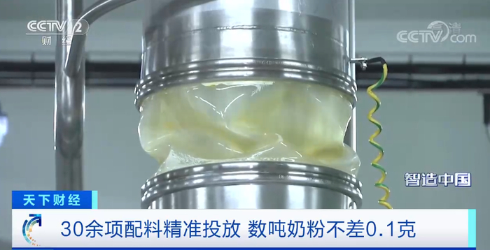 在《智造中国》的镜头里,整个飞鹤工厂的生产车间看不到一滴奶、一粒奶粉,所有原料都在纵横交错的不锈钢管道和瓶瓶罐罐里。报道中提到,制造过程中,原料奶会与30多种婴幼儿所需的营养元素进行科学配比、混合,不同配方的配料种类和用量都不一样。这就需要非常精细的质量管控能力,以保证科学配方能够实现精准配比。对于以吨计算的奶粉量,飞鹤的原料校准系统能将误差控制在0.1克范围内。