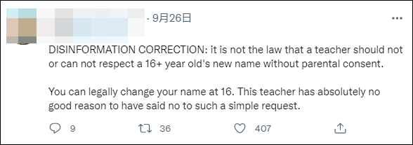 “16岁就可以合法改名了,这位老师绝对没有理由拒绝如此简单的要求。”
