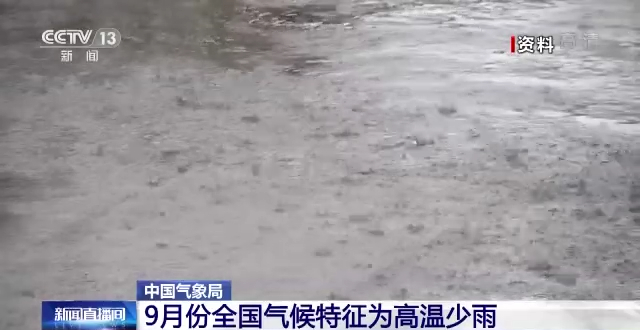 中国气象局今天(9月29日)下午召开新闻发布会,会上通报,整个9月我国全国气候呈现出高温、少雨的特征。