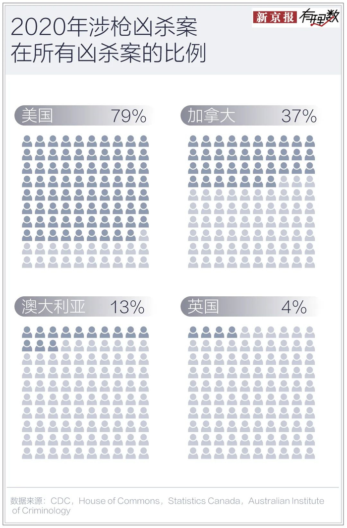 这一比例远远高于加拿大、澳大利亚、英国以及许多其他国家的枪支凶杀案比例。
