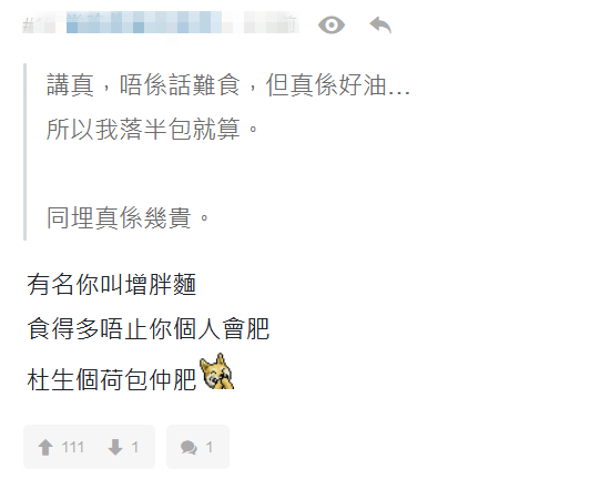 在“黄丝”网络大本营“连登”讨论区,都有人忍不住吐槽“比很多正宗台湾品牌贵”,“名叫增胖面,吃多了不仅你的人会肥,杜汶泽的钱包更肥。”