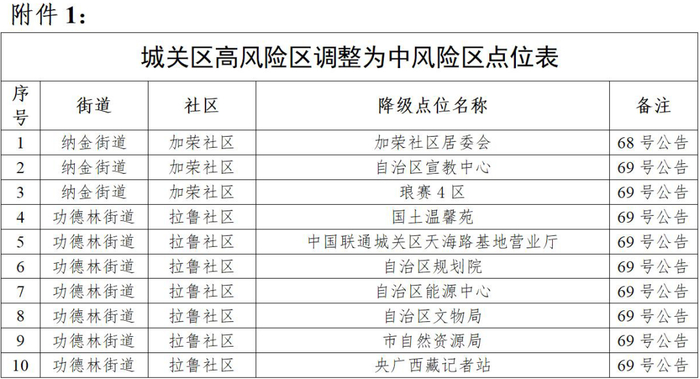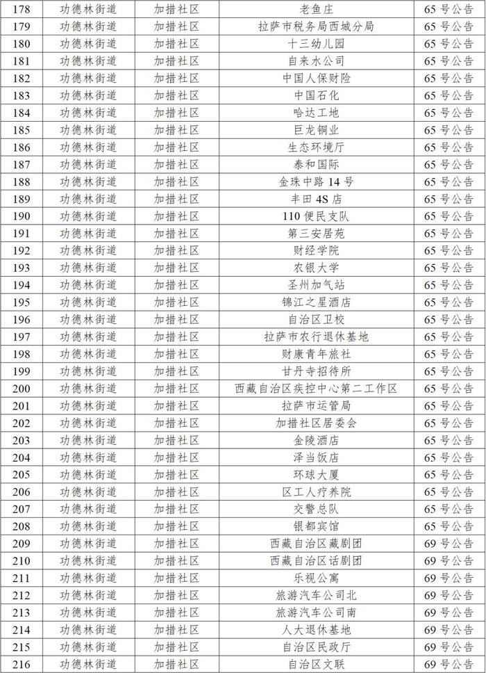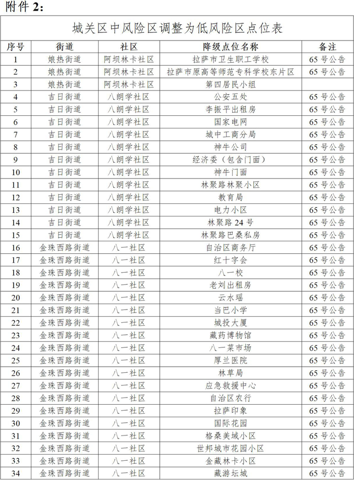 3。中风险区“拉萨之窗及其周边”包括拉萨之窗、丽枫酒店,现已全部降为低风险区。