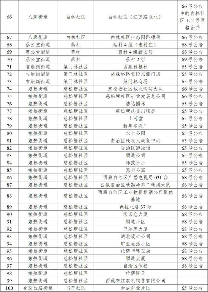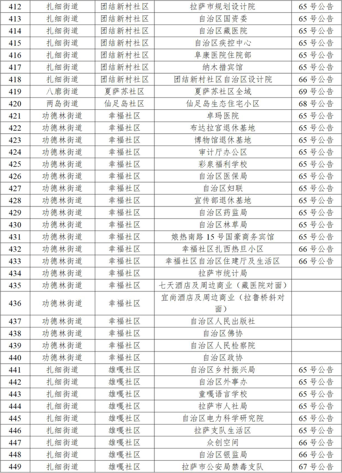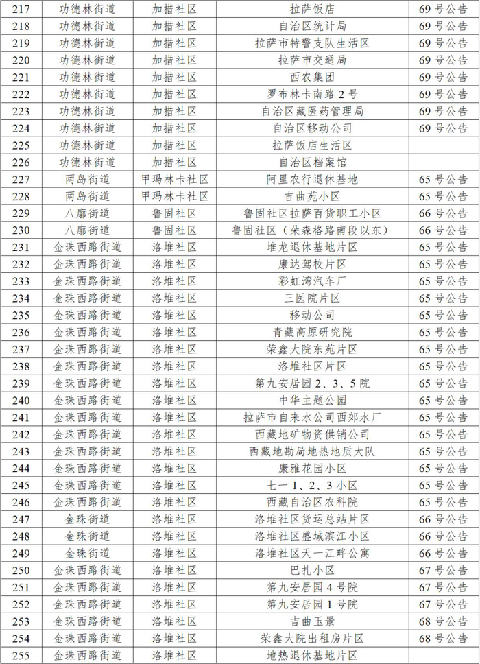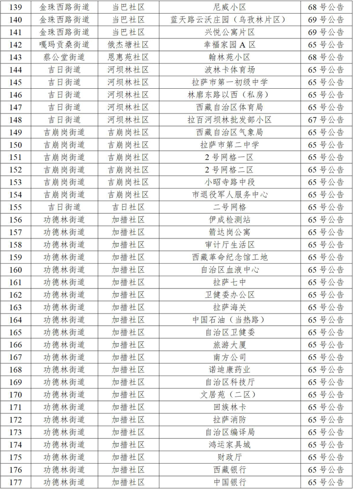 11。柳梧新区拉萨之窗小区(在中风险区“拉萨之窗及其周边”内);