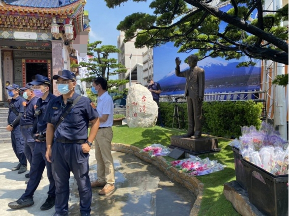 高雄为安倍晋三设铜像,台团体“拔菜总部”到现场抗议