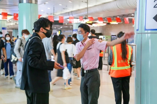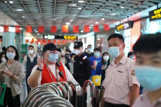 公司执法队、社会志愿者等纷纷支援南京东路、陆家嘴站,共同守护车站运营有序。