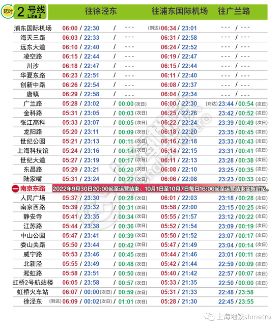 提升保驾力度 满足客流出行 10月3日2、7、8、9、10、13号线国庆临时延时运营