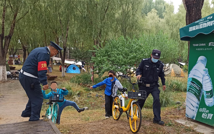 马丙利介绍,大运河森林公园警务站成立于2019年,为了增加游园安全系数,为游客创造良好的游园环境,警务站24小时为游客服务。警务站原本有三名驻站民警,国庆假期期间,通州分局为大运河森林公园警务站增派警力,从分局相关部门抽调支援警力,采取步行和巡逻电瓶车交替的模式,带领园区保安进行巡逻。外围还设置了两辆巡逻车,保障大运河森林公园和一路之隔的城市绿心森林公园外围的交通秩序。