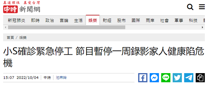 台媒:小S确诊新冠紧急停工,节目暂停录制