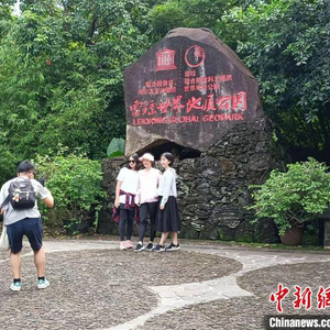 中新网海口10月4日电 (张月和)在海口火山口国家地质公园景区大门前,拍照留念的游客络绎不绝。受疫情影响,许多游客放弃了长途旅行,放慢脚步的短途出行使游客能够更加细致地体验海南景区特色。