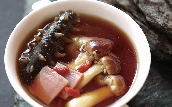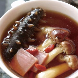 姬松茸炖辽参汤。
