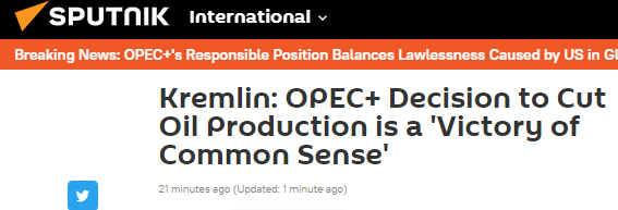 俄媒:克宫称,欧佩克+决定减产是“常识的胜利”