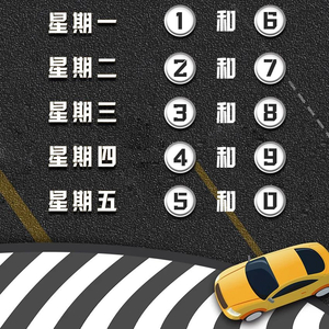 2022年10月3日至2023年1月1日,每周一至周五限行机动车车牌尾号分别为:1和6、2和7、3和8、4和9、5和0。临时号牌按号牌尾号数字限行,车牌尾号为英文字母的,按0号管理。