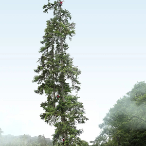 据“野性中国”官方公众号介绍,本次科考使用了国际测量巨树的“金标准”——攀树直接测量法,即人工攀爬到巨树顶端,确定最高树梢之后,将金属卷尺从树梢放下至地面测量。由于树体庞大,且处在一个斜坡,树干中心最低点无法触达,考察队员使用两种方法进行多次测量,并同时测得倾斜树桩出露部分上下高差为0.8米。在确定树桩中心点位置后,最终得出树干中心最低点到树梢高度差为83.4米。