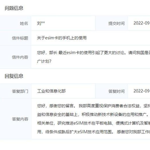 中新网10月11日电(中新财经记者 吴涛)“正组织相关单位,研究推进eSIM技术在平板电脑、便携式计算机及智能手机设备上的应用,待条件成熟后扩大eSIM技术应用范围。”近日,工信部在回复网友提问中谈到的eSIM引发关注。