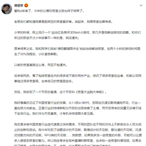 新京报讯 10月13日晚,蒲熠星在社交平台发布长文,告别《密室大逃脱4大神版》,“我好像真的见证了中国密室行业的发展,从1.0到4.0时代,到现在沉浸式剧场遍地开花,行业一直在努力向前走。正是行业的持续耕耘为节目的出现培育了土壤,而节目带来的流量又反哺于线下实体行业。我们作为节目嘉宾,才有机会持续跟大家见面。我总是会被中国密室行业迭代速度之快所震惊,不同的团队在不同的方向上不断做出令人叹为观止的创新和尝试。希望密室也能为你带来快乐!”