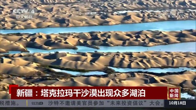 塔克拉玛干沙漠现大片罕见湖泊
