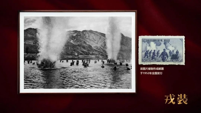△1951年,志愿军战士们涉水强渡在敌人重炮封锁和重兵把守下的昭阳江。