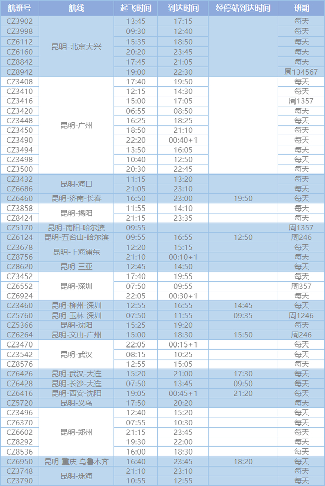 好消息!10月30日起,南航云南计划新增昆明直飞多地航班