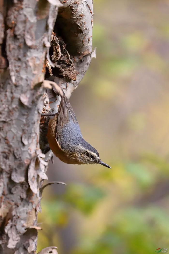 黑头䴓有个很特别的俗称“贴树皮”, 是因为䴓属类的小家伙们有个特殊的典型特技——它们能沿树干垂直向上或向下攀爬,可以脚趾紧抓枝干用标准倒立的姿态觅食。这样稳稳倒立在树干上觅食的动作(不同于一些食虫鸟类用爪倒钩在树枝的动作)可是䴓属鸟类专属技能哦!因为多数鸟儿的四趾,是三前一后,后趾稍短。啄木鸟等攀禽的四趾,是两前两后抓握有力,但它们也只能呈螺旋状从树干下方攀爬到上面。但䴓的后趾与中趾等长,这样的爪抓握就更有力,所以可以轻松自如的倒钩在树干上灵活觅食。