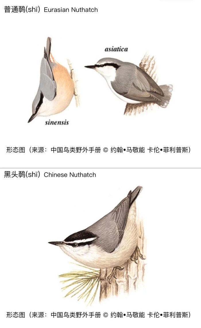 䴓(音:shī)是一个类群很小的鸟类,全世界共有25种,我国有11种,其中普通䴓分布最广泛,在北京周边的山林中可以发现它们的身影。黑头䴓多生活于北方低山至亚高山的针叶林或混交林带,其他几种大都分布在我国西南边境线附近,有的种类分布范围更狭小。