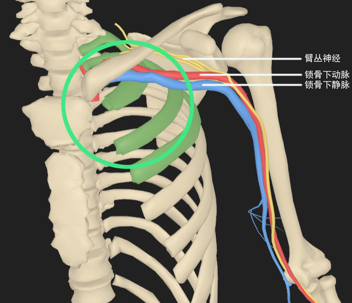 病变位于第2后肋,其后方为肩胛骨,并与锁骨下血管、臂丛神经解剖毗邻