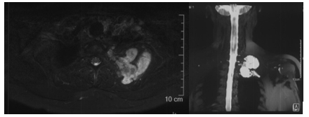 陈女士今年53岁,4个多月前无意间发现自己的左肩背部长出了一个鸡蛋大小的包块,偶有疼痛不适感。起初并未在意,但包块逐渐增大,左侧颈肩部活动逐渐受限,当地医院就诊检查发现左侧第二肋破坏并向内外膨出包块,累及颈椎旁占位病变、同时向胸腔内突入巨大包块。病变周缘复杂的解剖结构使当地医院犯了难,更揪心的是,随着肿物不断向胸腔内生长,陈女士出现了胸闷、憋气的症状。意识到疾病的严重性,陈女士慕名来到北京积水潭医院。