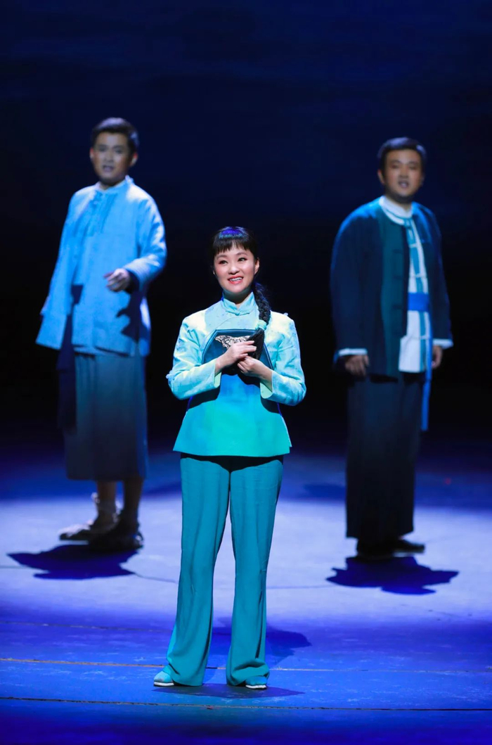 对这些道具的挪移和以“湘西山水”为主画面的多媒体背景的有序转换,对灯光影调和节奏的处理把控,对演员合理、精准、便利的舞台调度,都清晰体现出导演坚持以音乐为核心的强烈意愿和戏剧追求,“一切在节奏中、一切在情绪里”的创排理念,使舞台呈现丝丝入扣,一气呵成。全剧在抒情基调和写意品格的基础上,于绚丽多姿、轻盈灵动中见厚重深沉,于大开大合、温婉雅致中见诗意盎然。