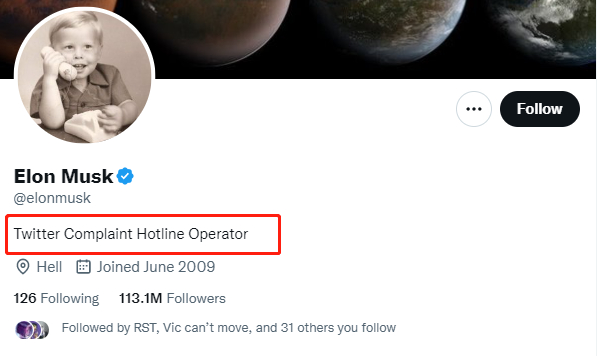 不过,麻烦并没有结束,围绕该社交平台的诸多争议仍在不断涌现,马斯克的账号简介也从之前的“推特首席”变成了“推特投诉热线接线员”。