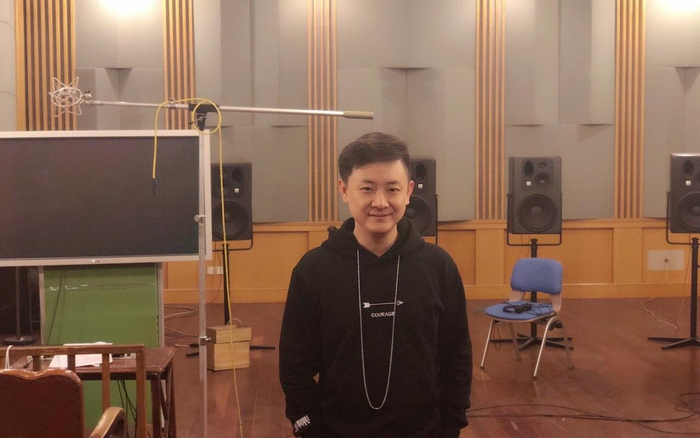 2018年,张杰在社交平台发布工作动态,在上海译制片厂录音。