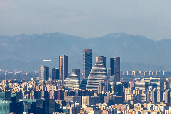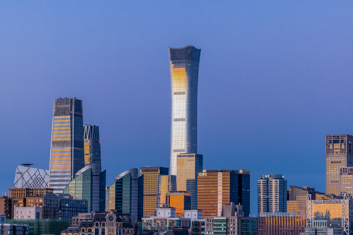 2021年6月,中国北京,天气晴朗时的北京国贸CBD,作为北京经济活动最为密集的地区之一,大量金融、医药、地产等行业的跨国公司在此“扎堆”。图/IC photo