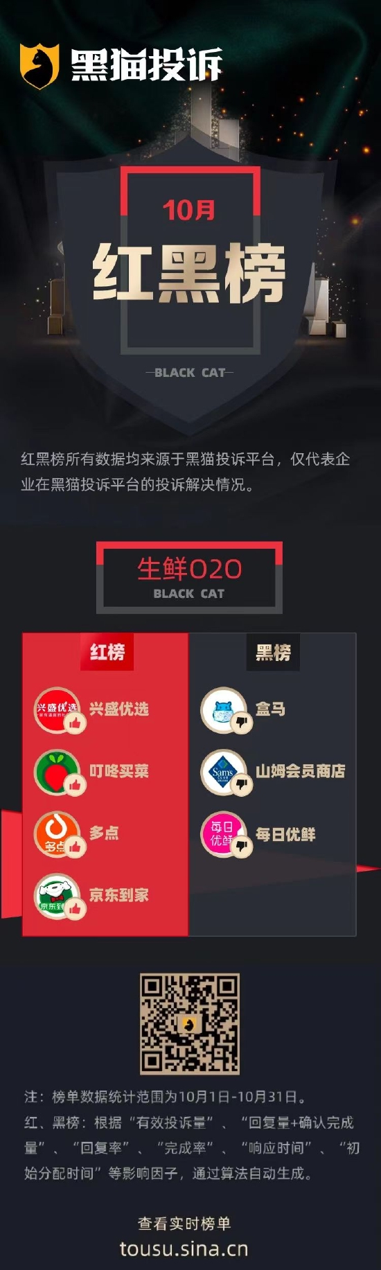 10月黑猫投诉生鲜O2O领域红黑榜:山姆会员店退卡困难