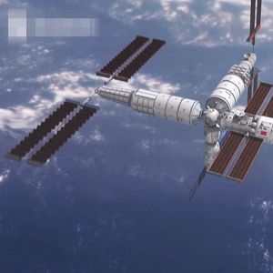 2022年11月1日,空间站梦天实验舱发射入轨后,对接于天和核心舱前向端口(视频截图)。中国载人航天工程办公室提供