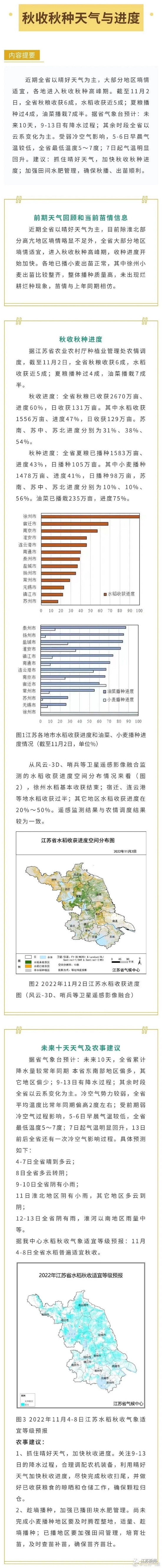 2022年江苏省水稻秋收适宜等级预报