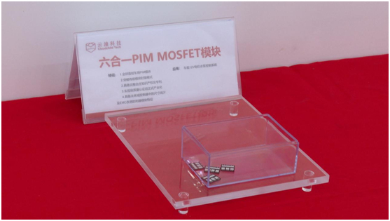 在当天的投用仪式现场,云潼科技发布了一款全新产品——全球首创车用六合一PIM MOSFET模块。MOSFET是金属-氧化物半导体场效应晶体管,是电动车低压系统直流转交流驱动电机、水泵的核心部件。